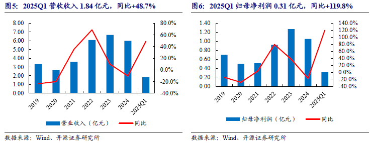 2019-2023年,公司营业收入由3.32亿元增长至6.67亿元,归母净利润由0.7亿元增长至1.27亿元;营收及利润均有较大幅度的增长。2024年,公司业务有所收缩,实现营收及归母净利润5.99、1.05亿元,相较2023年分别下滑10.2%、17.3%,主要系海外市场订单下降及产品销售结构变动所致。