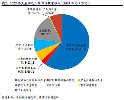 页岩油气压裂供水软管是公司的主力产品,2022年实现收入33591万元,占当年全部收入的55.34%。