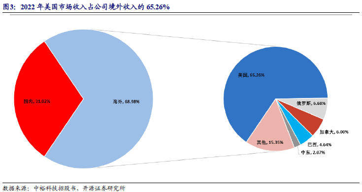 公司产品以境外销售为主,客户分布于北美、中东、南美、欧洲等多个国家和地区,已取得美国FM、UL、英国BSI和欧盟MED等多项海外认证,具备进入欧美等国外市场的资质。公司已在海外市场深耕多年,积累了广泛的客户资源,建立了较好的口碑,产品质量等得到客户的广泛认可。美国作为全球页岩油开采的最大市场,拥有全球最大的页岩油可采资源量,是中裕科技最大的单体市场,2022年美国市场收入占公司全部境外收入的65.26%。