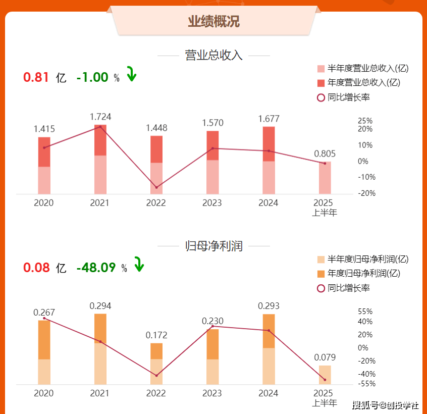 2025年上半年,公司实现营业收入8052.83万元,同比微降1.00%。